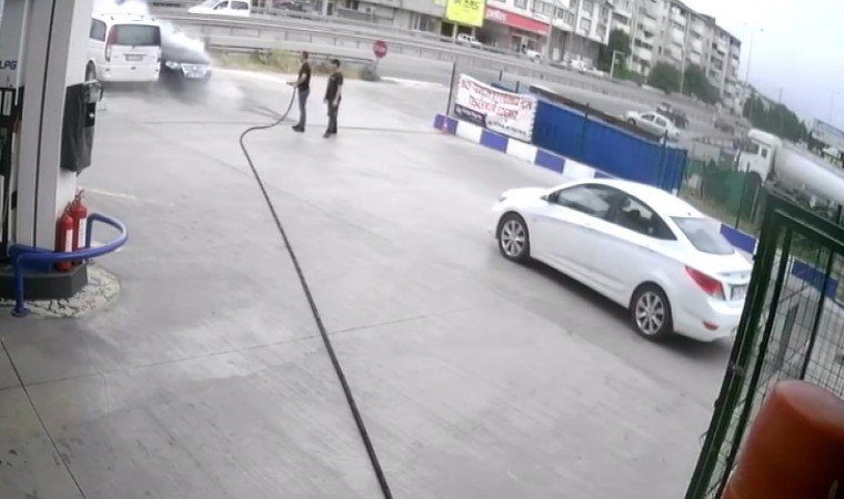 Kocaeli’nin Körfez ilçesinde akaryakıt istasyonu bahçesinde park halindeki otomobilden dumanların yükseldiğini gören çalışanlar yangına anında müdahale etti. Araçtan yükselen dumanlar güvenlik kamerasına yansırken, erken müdahaleyle facia önlendi.