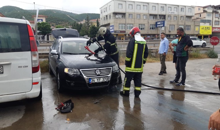 Olay, Mimar Sinan Mahallesi’nde akaryakıt istasyonu bahçesinde meydana geldi. Edinilen bilgiye göre, park halindeki S.Ö’ye ait 34 YF 370 plakalı otomobilin kaputundan bir anda dumanlar yükselmeye başladı. Yoldan geçen bir sürücünün uyarısı ile yanmaya başlayan otomobile akaryakıt istasyonu çalışanları müdahale etti. Çalışanların müdahalesiyle otomobilin daha fazla yanmasına engel olunurken ihbar üzerine gelen itfaiye ekipleri de soğutma çalışması yaptı. Kaputu açmak için uzun süre uğraşan itfaiye ekipleri, yanma sonucu yapışan kapağı açamadı. Bol su sıkılarak yangın tamamen söndürülürken araç daha sonra tamirciye çektirildi.