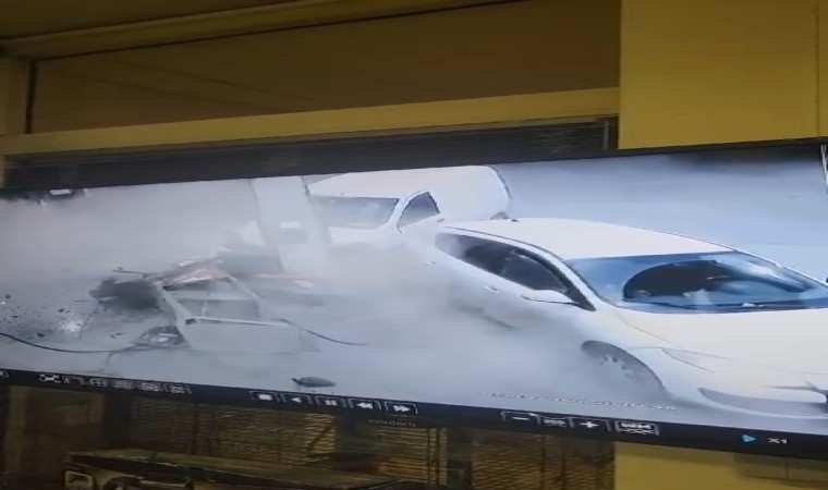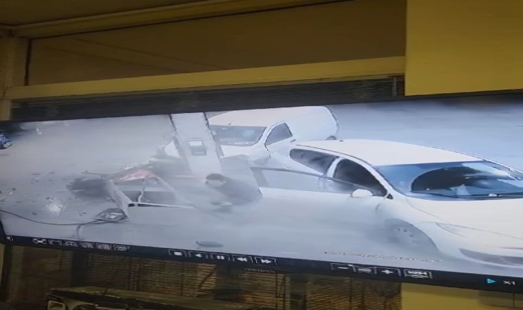 Kaza anı ise saniye saniye akaryakıt istasyonunun güvenlik kamerasına yansıdı. Görüntüde, hafif ticari aracın hızla geldiği, pompa bölümüne ve otomobile çarptığı anlar yer aldı. Ayrıca görüntüde, otomobilde bulunan yolcunun kazanın ardından panikle araçtan indiği de görüldü.