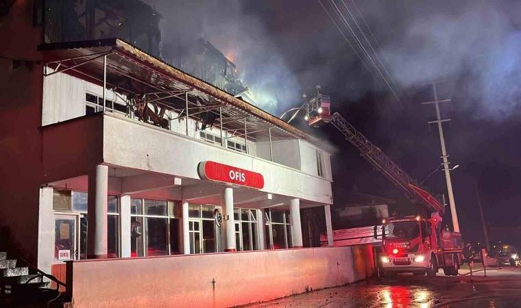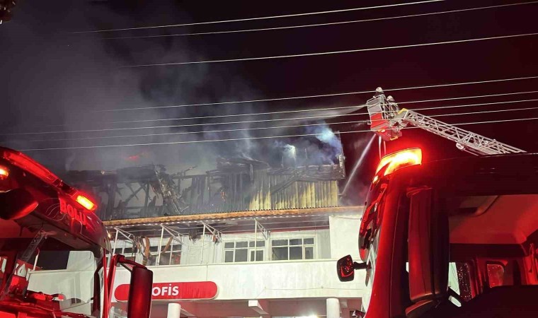 İtfaiye ekipleri, binanın 2 katını tamamen saran yangını akaryakıt istasyonuna sıçramadan söndürdü. Yangında 3 katlı ofisin 2 katı kullanılamaz hale geldi.