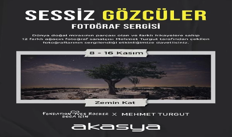 Fotoğraf sanatçısı Mehmet Turgut’un fotoğrafladığı, her bir ağacın hikayesini ise oyuncu Yetkin Dikinciler’in seslendirdiği sergi, ziyaretçilerine tarihsel ve duygusal bir yolculuk sunuyor. Anadolu'da binlerce yıldır var olan ve dünya doğal mirasının parçası anıt ağaçlarının hikayesinin anlatıldığı ‘Sessiz Gözcüler’ sergisinde; Burgulu Ahlat (Taşköprü, Kastamonu), Dilek Ağacı (Göbeklitepe, Şanlıurfa), Zeytin Ağacı (Toroslar Beldesi, Mersin), Ağlayan Çınar, Emine Çınarı ve Ahtapot Çınarı gibi kadim Anadolu topraklarına kök salmış 12 ağacın fotoğrafları, ziyaretçileri bekliyor. Akasya’daki sergide fotoğraflanan ağaçlar arasında, Zonguldak’taki 4 bin 118 yaşındaki Gümeli Porsuğu ve bin 100 yaşındaki Porsuk Ağacı, Antalya’da bulunan bin 100 yaşındaki Arapastı Ağacı, İstanbul’da yer alan bin 212 yaşındaki Ağıl Çınar gibi bin yaşını aşkın ağaçlar bulunurken, Mustafa Kemal Atatürk’ün özgürce büyüyebilmesi uğruna köşkünün yerini değiştirdiği 400 yaşındaki Ulu Çınar da yer alıyor.