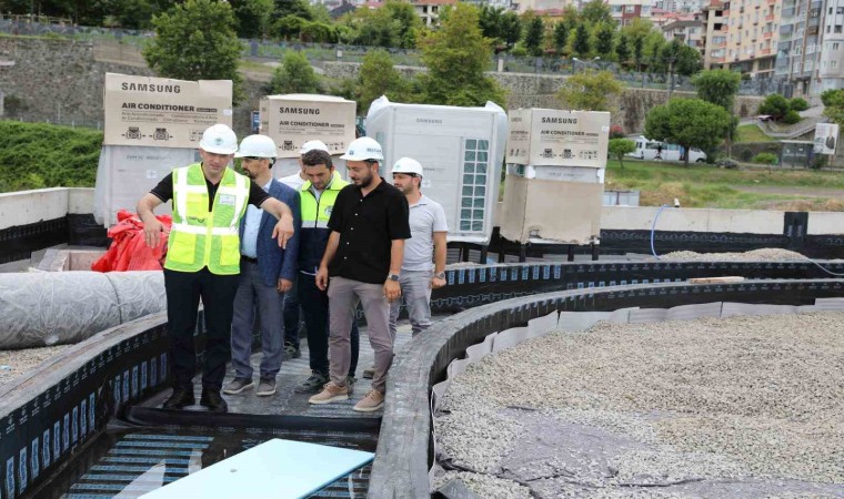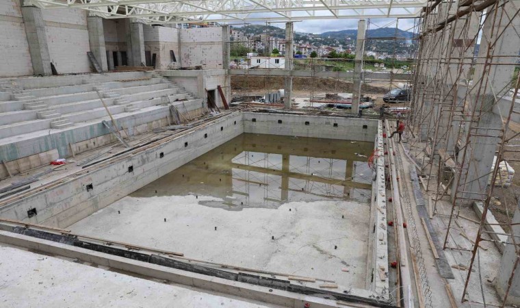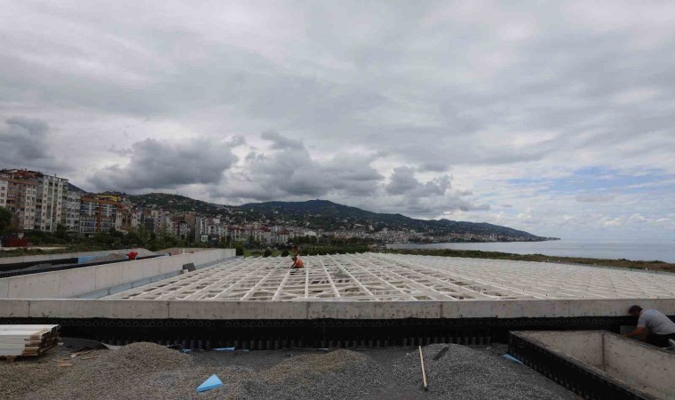 Trabzon’un Akçaabat ilçesinin Yaylacık Mahallesi sahil kısmında yapımı devam eden Yarı Olimpik Kapalı Yüzme Havuzunun kaba inşaatının tamamlanmak üzere olduğu belirtildi.