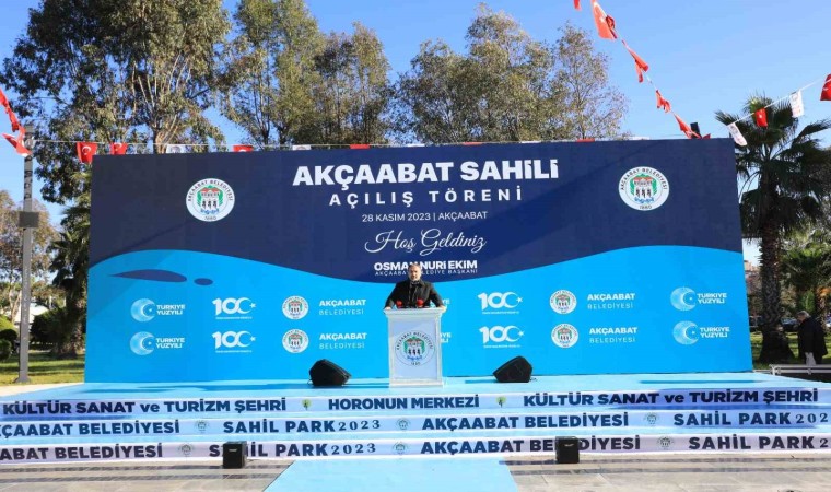 Akçaabat Sahil Park’ın açılış töreninde konuşan Akçaabat Belediye Başkanı Osman Nuri Ekim, “Bundan yaklaşık 25 yıl önce, Akçaabatlı hemşerilerimizin hizmetine sunulan sahilimiz, yapıldığı dönemde bölgemizdeki çevre il ve ilçelere de örnek teşkil etmiştir. Uzun yıllar boyunca hem yerli hem de yabancı binlerce turisti ağırlayan, Akçaabat halkının ve bölge insanının denizle buluşma ve nefes alma yeri konumunda olan Akçaabat sahilimiz için bugün gelinen noktada yenilenme ihtiyacı hasıl olmuştu. Biz de yapmış olduğumuz proje neticesinde ve Çevre Şehircilik Bakanlığı’mızın desteğiyle Akçaabat Sahil Park’ımızı yenileyerek, yeni görünümüyle halkımızın hizmetine sunduk. Buradaki yenileme çalışmalarımızın ana unsurunu Akçaabat’ımıza daha nitelikli, fonksiyonel bir park kazandırmak ve en önemlisi parkımızın 4 mevsim 12 ay kullanımını sağlamak oluşturuyordu. Akçaabat Belediyesi olarak Sahil Parkımızı etap etap yenileyerek daha modern ve fonksiyonel hale getirdik" dedi.
