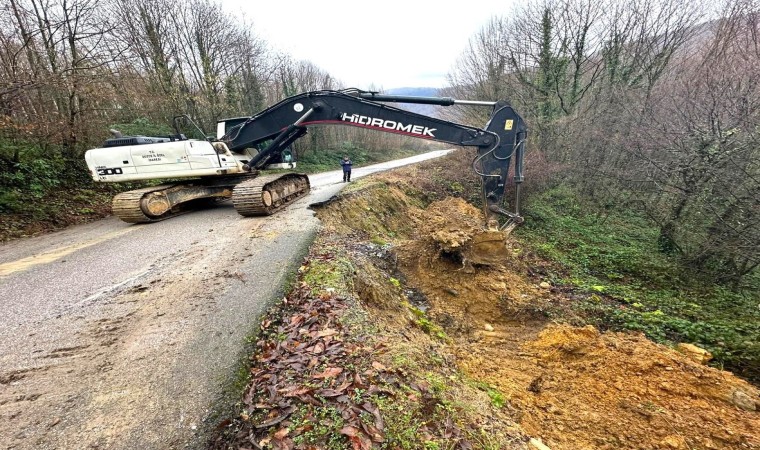 DÜZCE(İHA) – Düzce İl Özel İdaresine bağlı ekipler yağışlar sonucu meydana gelen heyelanlara anında müdahale ediyor.