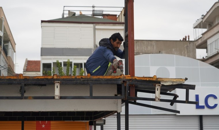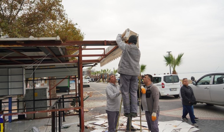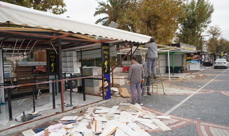 Balıkesir’in Edremit Belediyesi ekipleri, Akçay sahilinde çevre düzenleme çalışmaları kapsamında, çevreyi işgal ettiği ve görüntü kirliliğine yol açtığı tespit edilen büfeleri kaldırmaya devam ediyor.