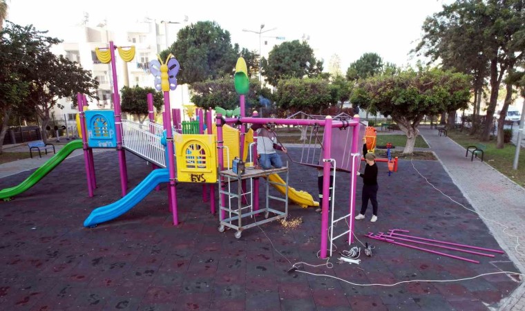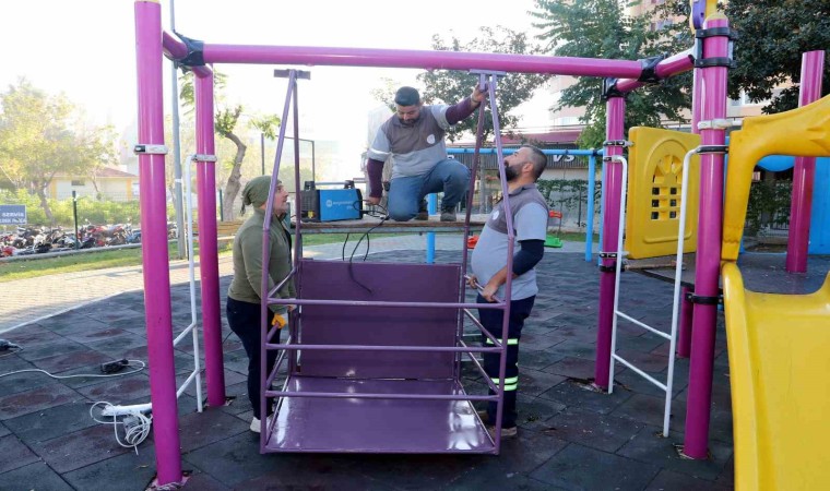 Akdeniz Belediye Başkanı Hoşyar Sarıyıldız ve Başkan Yardımcısı Nuriye Arslan’ın talimatı ve Sosyal Yardım İşler Müdürlüğünün hazırladığı proje kapsamında Yeni Mahalle Gazi Mustafa Kemal Bulvarı üzerinde yer alan ve Akdeniz’in ilk engelsiz parkı niteliği taşıyan Hüseyin Okan Merzeci Engelsiz Parkında mevcut olan oyun grupları ve mobilyalar teknik birimler sahasında ekipler eliyle onarılıp yenilendi.