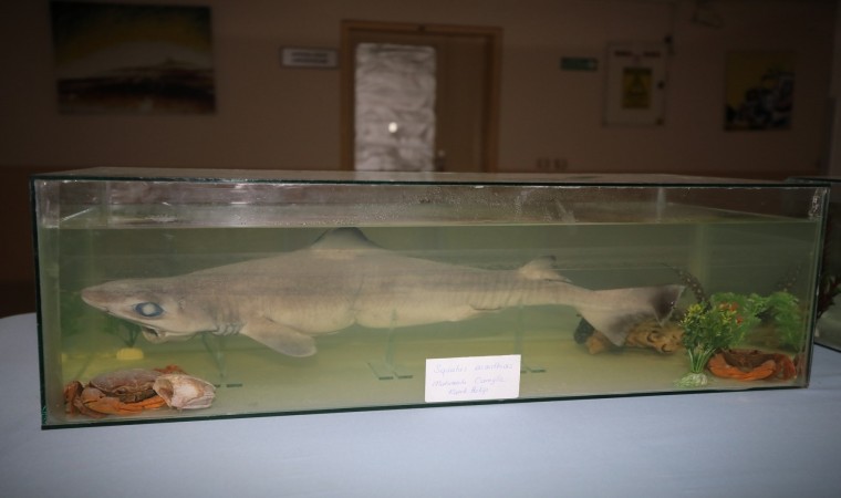 Akdeniz Üniversitesi Fen Fakültesi fuaye alanında, Nisan ayında Antalya Kemer açıklarında, balıkçıların ağlarına takılan yavru mahmuzlu camgöz köpekbalığı (Squalus acanthias) sergilenmeye başlandı.