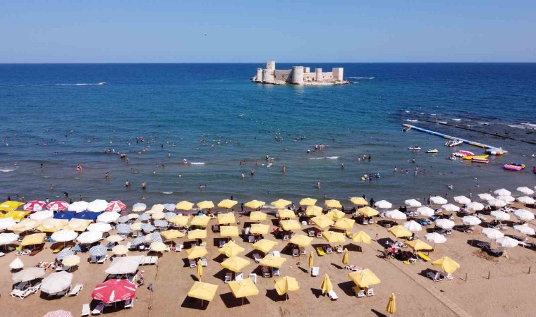 Meteorolojinin uyarı verdiği sıcak hava etkisini sürdürürken, yerli turistlerin yanı sıra gurbetçiler de serinlemek ve tatillerini geçirmek için Doğu Akdeniz’in tatil kenti Mersin sahillerini tercih ediyor. Erdemli ilçesinde yer alan Akdeniz’in incisi Kızkalesi’nde bayram sonuna kadar devam eden doluluk oranı ise sıcaklığında etkisiyle yüzde 100’den, yüzde 60’lara geriledi. Sıcaklığın mevsim normallerinin 5-6 derece üzerinde seyrettiği bu günlerde tatili tercih edenler ise denize girip kumsal da güneşleniyor. Çeşitli su sporları aktivitelerine katılanlar sıcak havaya ve deniz suyunun 28-29 derecelerde olmasına aldırış etmeden gönüllerince eğleniyor.