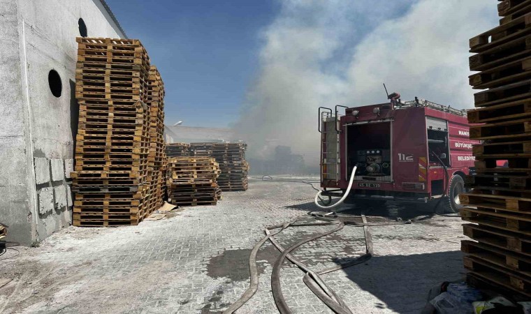 Manisa’nın Akhisar ilçesindeki bir panel imalathanesinde başlayan yangın yanındaki palet işletmesine sıçradı. Korku dolu anların yaşandığı yangında bir itfaiye eri dumandan etkilenerek hastaneye kaldırılırken, palet işletmesindeki yazıhane ve bahçesindeki paletler tamamen küle döndü.