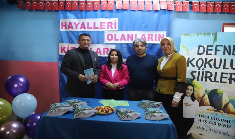 Manisa’nın Akhisar ilçesinde yer alan Misak-ı Milli İlkokulu 4. sınıf öğrencisi 9 yaşındaki Defne Arslanoğlu, çıkardığı şiir kitabıyla hem ailesini hem de okul arkadaşlarını gururlandırdı. Defne, okulunda düzenlenen imza günü etkinliğinde ilk kitabını tanıtarak destekçilerinin yoğun ilgisiyle karşılaştı.