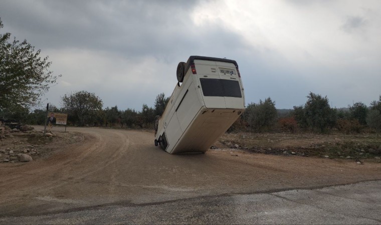 Kaza, Hassa ilçesi Aktepe Mahallesi’nde meydana geldi. M.P. idaresindeki Ford marka 31 AAZ 160 plakalı kamyonet, sürücüsünün direksiyon hakimiyetini kaybetmesiyle ters döndü. Ters dönen kamyonetin dik durması ilginç bir görüntü oluşturdu. Görenleri şaşırtan kazada yaralanan olmadı. Dik duran kamyonet, iş makinası yardımıyla çevrildi.