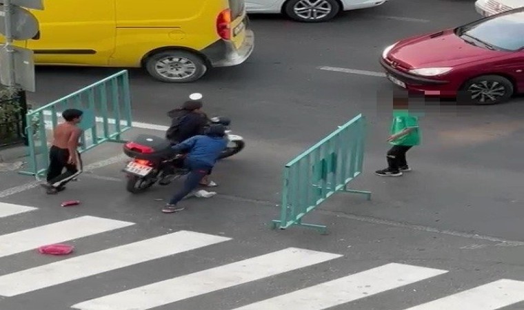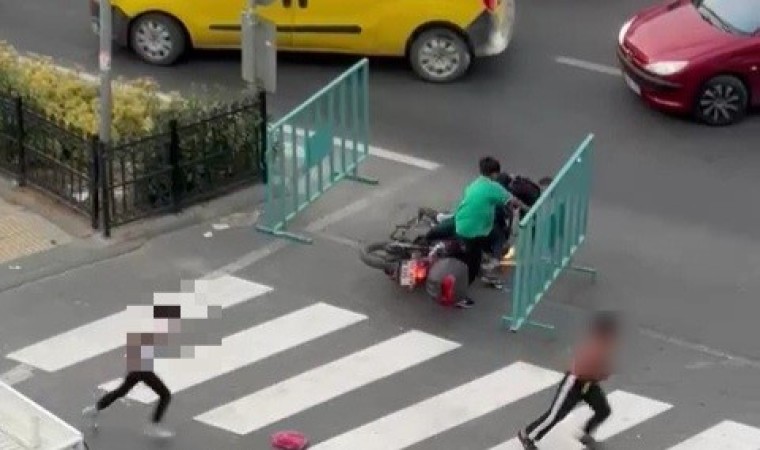 Motosikletin devrilmesi ile kazayı yara almadan atlatan çocuklar, bun rağmen yere düşen motosikleti kaldırıp çaldıkları motosiklet ile hızla alandan uzaklaştı.