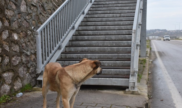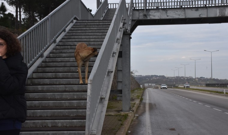 Sinop Üniversitesi İlahiyat Fakültesi mevkiinde bulunan üst geçidi kullanan sokak köpeğinin akıllı hareketi görenleri şaşkına çevirdi.