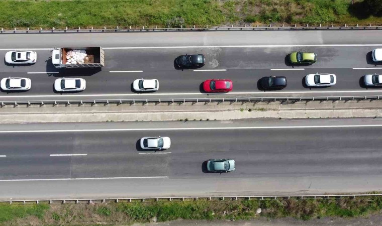 Tatilcilerin yoğun bir şekilde dönüş çilesi dron ile de görüntülendi.