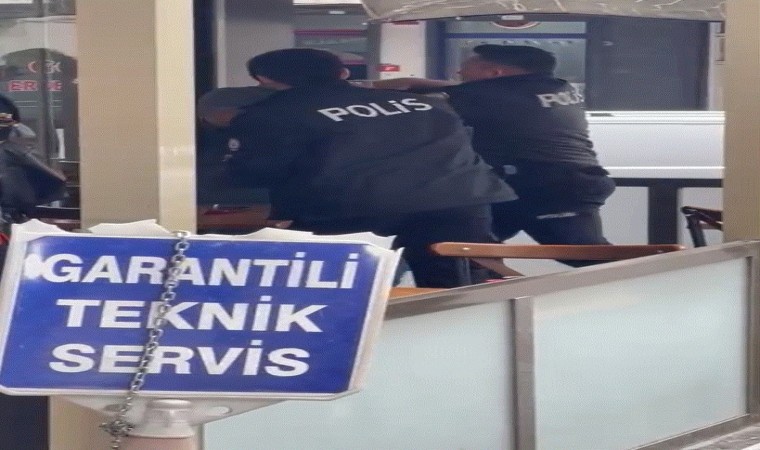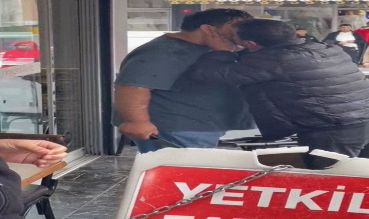 Olay, dün Esenyurt İncirtepe Mahallesi’nde bir börekçide yaşandı. İddiaya göre, akli dengesi yerinde olmayan bir adam, evde annesini darp ederek dışarı çıktı. Kadın yaşanan bu durum üzerine polise haber verdi. Polis ekipleri mahallede bulunan bir börekçide akli dengesi yerinde olmayan adamı gözaltına almak istedi. Polise mukavemet eden adam, kısa süreli bir arbede sonra börekçiden bıçak alarak gözaltına alınmak istemediğini söyledi. Dakikalarca süren gerilimin ardından çevredeki bir esnaf adamın yanına gelerek onu sakinleştirmeye çalıştı. Bir süre eli bıçaklı adama sarılarak öpen esnaf, sakinleştirerek bıçağı elinden aldı. Adam daha sonrasında polis ekipleri tarafından gözaltına alınırken, o anlar cep telefonu kamerasına yansıdı.