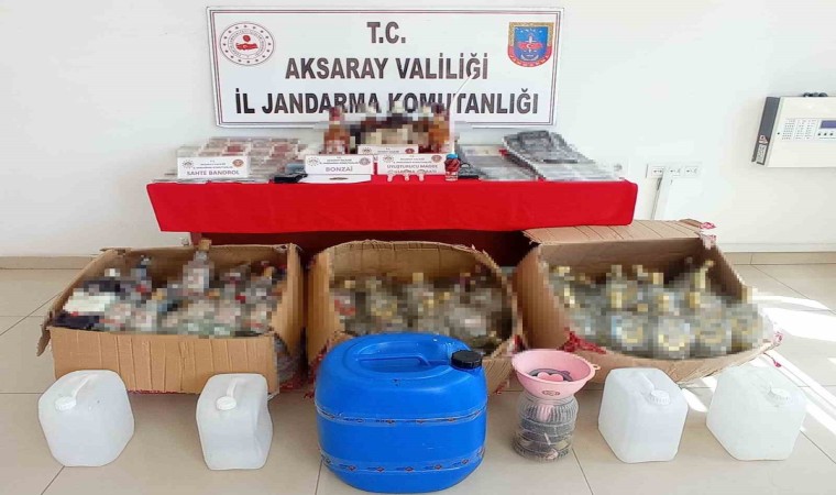 Aksaray’da 3 ayrı ikamete operasyon düzenleyen jandarma ekipleri, 10 litre sahte alkol, sahte bandroller ve sahte içki markası etiketleri ele geçirdi. Uyuşturucu maddenin de ele geçirildiği operasyonda 3 kişi gözaltına alındı.