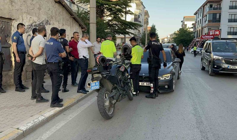 Olay, Büyük Bölcek Mahallesi Büyük Bölcek Caddesi üzerinde yaşandı. Edinilen bilgiye göre, rutin devriye atan İl Emniyet Müdürlüğü Asayiş Şubesi ekipleri şüphe üzerine 68 AK 685 plakalı otomobile dur ihtarında bulundu. İhtara uymayıp fren yerine gaza basıp kaçan sürücü ile polis arasında kovalamaca yaşandı. Lüks araçla hızla kaçmaya başlayan sürücüyü polis ekipleri takibe aldı. Takip eden ekibin plakayı ve gidiş istikametini diğer ekiplere anons etmesi üzerine Aksaray Emniyeti alarma geçti. Onlarca ekibin katıldığı kovalamacada polis ekipleri, aracın kaçış istikametini abluka altına aldı. Yaklaşık yarım saat süren kovalamaca sonucu araç durdurulurken, araçtan indirilen sürücü K.E.Y.’ın (17) ehliyetsiz olduğu anlaşıldı. Sürücü ve yanında bulunan Y.A.A. (17) ile Ç.E.A. (17) gözaltına alındı. Araçta yapılan aramada 1 adet kurusıkı tabanca ele geçirilirken, trafik ekiplerince sürücüye dur ihtarına uymamak, trafiği tehlikeye düşürmek, ehliyetsiz araç kullanmak, ters şeritte seyretmek gibi ihlallerden toplamda 60 bin TL ceza kesildi.