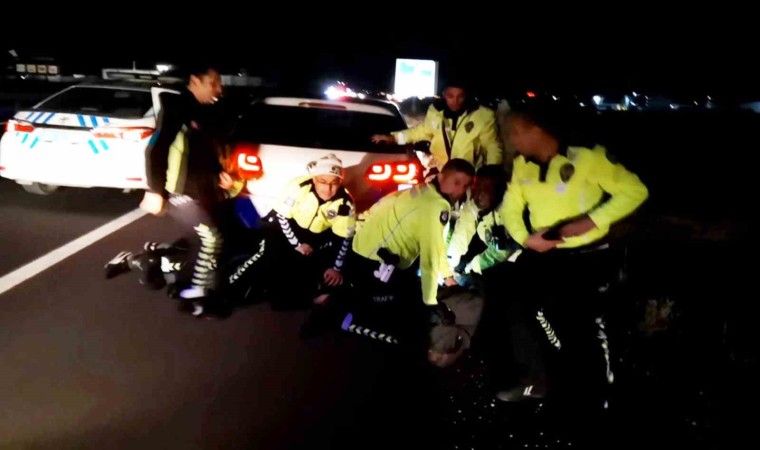 Araçtan indirilen sürücü İbrahim T. ve polisin ismini vermediği şüpheliye ters kelepçe yapıldı. Bu esnada polis ekiplerine seslenen şüphelilerden biri, "Abi kurban olayım, canını yediğim, vallahi arabam yoktu beni bir yere götür dedim ya” diyerek savunma yaptı. Araçta yapılan aramada, bir miktar uyuşturucu madde ve kalıntıları ele geçirilirken, 2 şüpheli Aksaray Eğitim ve Araştırma Hastanesi Acil Servisi’nde sağlık kontrolünden geçirilerek sorgulanmak üzere İl Emniyet Müdürlüğü’ne götürüldü. Şüphelilerin uyuşturucu kullanmış olabileceği ihtimali üzerine kan testi alındı. Emniyetin geniş çaplı inceleme çalışması yaptığı olayla ilgili Aksaray Cumhuriyet Başsavcılığı tarafından soruşturma başlatıldı.