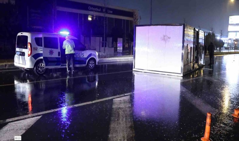 Aksaray’da gündüz başlayan şiddetli rüzgar gece yarısı yerini fırtınaya bıraktı. Fırtınayla birlikte yağmur yağışının da etkili olduğu şehirde savrulan konteynerler karayoluna uçtu.