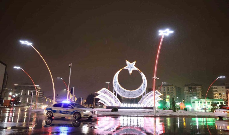 Aksaray’da gün boyu etkili olan fırtına, akşam saatlerinde yerini yağmur yağışına bırakırken şehre gece yarısı lapa lapa kar yağdı.