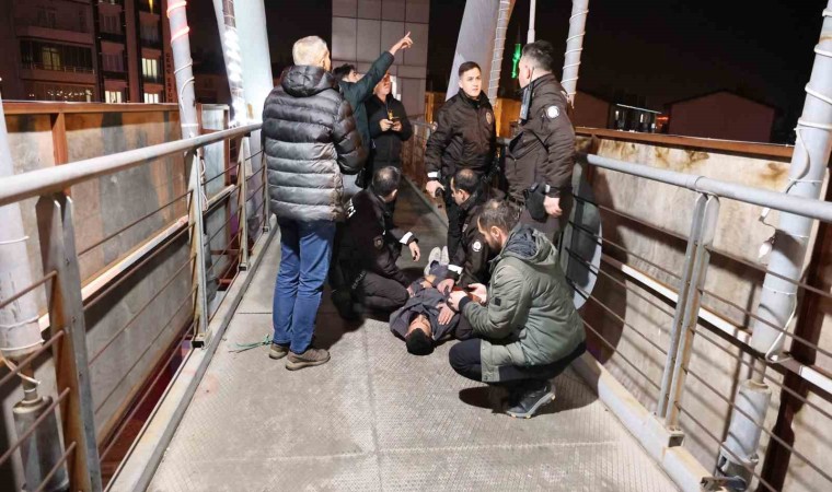 Olaya tanık olan Melike Yılmaz (18) ise, “Üst geçide çıkıyordum karşıya geçmek için. Bir kişi üst geçidin aydınlatma diğerine kendini asmış. İki bekçi de koşarak geldi birisi ayağına sarıldı, birisi de ipi kesti. Böylece kurtardılar, Allah razı olsun” diye konuştu.