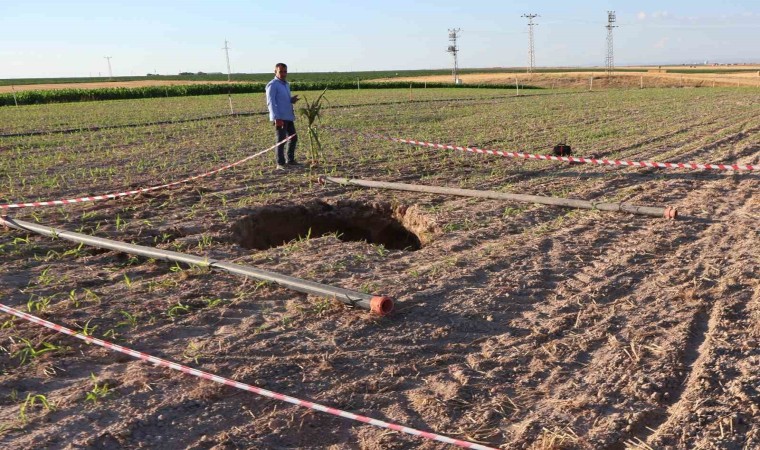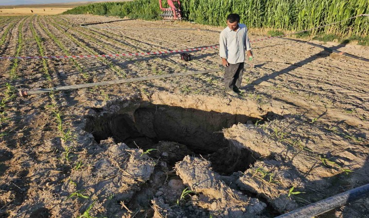 Aksaray’ın Sultanhanı ilçesinde mısır ekili tarlada küçük çaplı obruk oluştu. Yaklaşık 3 metre genişlik ve 4 metre derinliğe sahip olan obruk bölgede tedirginliğe neden oldu.
