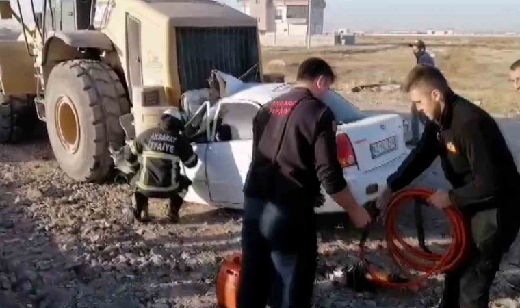 Aksaray’da sürücüsünün direksiyon hakimiyetini kaybettiği otomobil, park halindeki iş makinesine çarptı. Otomobilin hurdaya döndüğü kazada, sürücü araçta sıkışarak hayatını kaybetti.