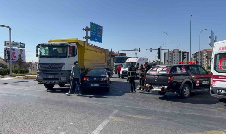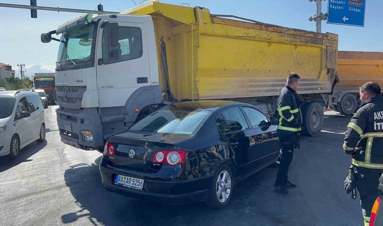 Kaza, E-90 Karayolu Nevşehir Kavşağı’nda meydana geldi. Edinilen bilgiye göre, Tacin Mahallesi istikametinden Hasas Mahallesi istikametine giden Feyzullah A. (50) idaresindeki 68 AAD 332 plakalı kamyon aynı istikamette seyreden Ahmet O. (63) yönetimindeki yabancı plakalı otomobil ile çarpıştı. Kaza sonucu otomobil sürücüsü ve araçta yolcu olarak bulunan eşi Remziye O. (60) yaralandı. Kazayı gören diğer sürücüler durumu hemen 112 Acil Çağrı Merkezine bildirdi. İhbar üzerine olay yerine polis, sağlık ve itfaiye ekipleri sevk edildi. İtfaiye ve sağlık ekipleri tarafından otomobil içerisinden çıkarılan sürücü ve eşi olay yerinde yapılan ilk müdahalelerinin ardından ambulanslarla Aksaray Eğitim ve Araştırma Hastanesi Acil Servisine kaldırıldı. Burada tedavi altına alınan yaralıların sağlık durumlarının iyi olduğu öğrenilirken, kazayla ilgili soruşturma başlatıldı.