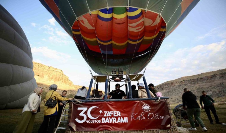 Aksaray’da 30 Ağustos Zafer Bayramı kutlamaları çerçevesinde Sevgi Evlerinde kalan çocuk ve gençler için özel ‘Zafer Uçuşu’ düzenlendi. Aile Sosyal Hizmetler İl Müdürlüğüne bağlı sevgi evlerinde kalan 35 çocuk, sıcak hava balonuyla gerçekleştirilen uçuşta Türk bayrağı açarak şanlı zaferin 102. yıl dönümünü kutladı.