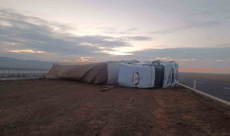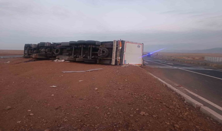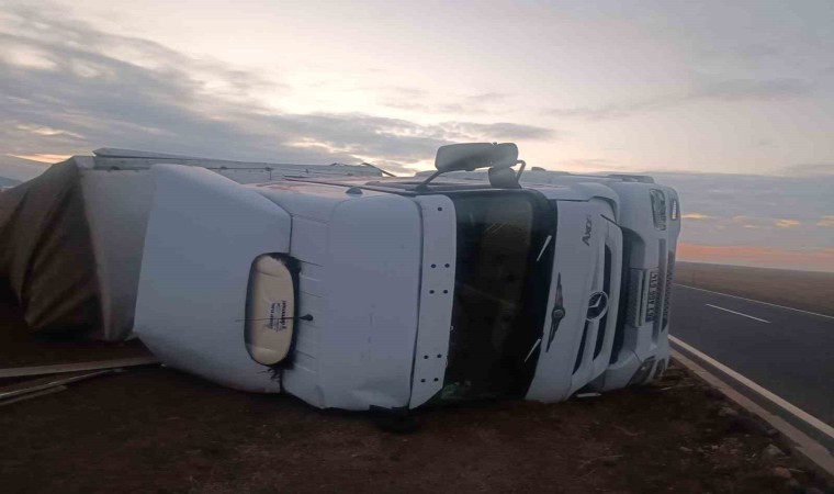 Aksaray’da kontrolden çıkarak refüje devrilen tırın sürücüsü yaralandı.