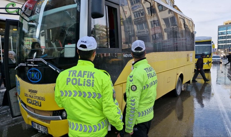 Aksaray’da kar yağışının ardından şehir merkezinde don olayları ve buzlanmalar meydana gelirken, polis ekipleri toplu taşıma araçlarını kış tedbirleri yönünde uyararak denetim yaptı.