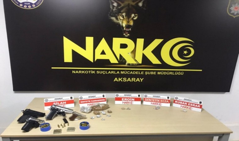 Edinilen bilgiye göre, İl Emniyet Müdürlüğü Narkotik Suçlarla Mücadele (NSM) Şubesi ekipleri, istihbari bilgiler doğrultusunda harekete geçti. Aksaray Cumhuriyet Başsavcılığı koordinesinde uyuşturucu tacirlerinin izini süren ekipler, isim ve adresleri tespit edilen 12 şahsı takibe aldı. Bir hafta sünren teknik ve fiziksel takibin ardından operasyon için düğmeye basan ekipler, 9 ayrı adrese baskın düzenledi. Narkotik köpeklerinin de katıldığı operasyonda 12 şüpheli yakalanarak gözaltına alındı. Ev, iş yeri ve şahıslara ait araçlarda yapılan aramalarda 2,5 kilogram metamfetamin, 13 bin 70 adet uyuşturucu hap, 475,25 gram sentetik kannabinoid, 245,43 gram skunk, 130 adet ecstasy hap, 4 adet tabanca, 67 adet fişek ele geçirdi. Ayrıca suçtan elde edildiği tespit edilen 42 bin 100 TL, bin 625 euro ve 30 İran riyali ele geçirildi. Operasyonda gözaltına alınan 12 şüpheli, sorgulanmak üzere İl Emniyet Müdürlüğüne götürüldü. Emniyetteki ifadelerinin ardından 12 şüpheli, sevk edildikleri adli makamlarca tutuklanarak cezaevine gönderildi.