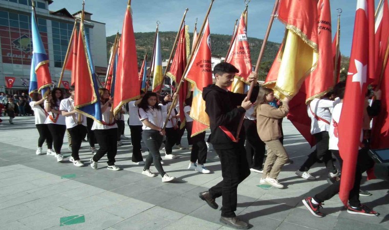 Kaymakam Özel konuşmasında, “29 Ekim 1923’te Cumhuriyetin ilanıyla, milletimizin kötüye giden yazgısı tersine çevrilmiş, Atatürk’ün aydınlattığı yolda, onun gösterdiği hedef doğrultusunda ülkemizin ilerlemesi devam etmiş ve güçlü devlet yapısıyla dünyada söz sahibi olan bir ülke haline gelmiştir. Bu nedenle bizlere parlak bir gelecek, tam bağımsız bir devlet armağan edenlere sonsuz minnetlerimizi sunuyoruz. Cumhuriyetimizin Kurucusu Ulu Önder Atatürk’ümüzü ve silah arkadaşlarını, kahraman şehitlerimizi ve gazilerimizi, gönül borcu ve saygıyla anıyoruz” dedi.