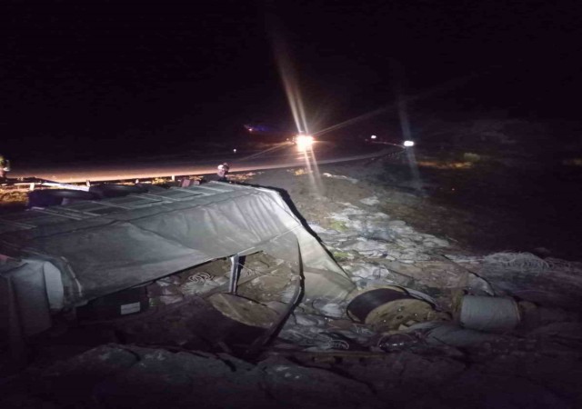 ANTALYA’NIN AKSEKİ İLÇESİNDE SÜRÜCÜSÜNÜN DİREKSİYON HAKİMİYETİNİ KAYBETMESİ SONUCU BARİYERLERE ÇARPIP DEVRİLEN KAMYONDAKİ 1 KİŞİ ÖLDÜ, 1 KİŞİ DE YARALANDI.