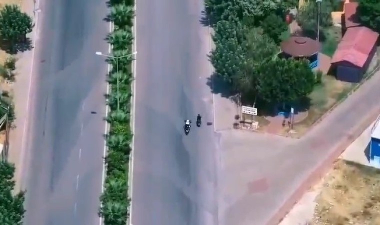 İl Emniyet Müdürlüğü Trafik Denetleme Şube Müdürlüğü ekipleri, motosiklet sürücülerine yönelik Pınar Mahallesi Ali Bozdoğanoğlu Bulvarı’nda denetim gerçekleştirdi. Dronla havadan görüntülenen denetim sırasında polis kontrol noktasına yaklaşan motosiklet sürücüsü F.C., yol kenarında bekleyen diğer motosiklet sürücüleri tarafından uyarılması üzerine kaldırıma çıktı. Bir süre motosikletiyle kaldırımda ilerleyen F.C., daha sonra caddeye inip polislerin yanından geçerek yoluna devam etmek istedi. Trafik polislerinin durumu fark edip durdurmaya çalıştığı motosiklet sürücüsü, ihtarlara uymayarak kaçmaya başladı.