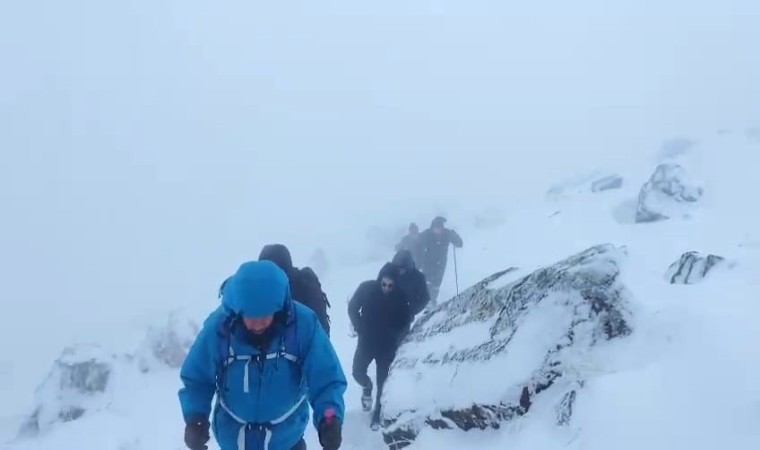 Vangölü Aktivistleri Derneği üyesi 15 kişilik grup, kar ve tipiye rağmen Van’ın Muradiye ilçesindeki Esruk Dağı’na tırmandı.