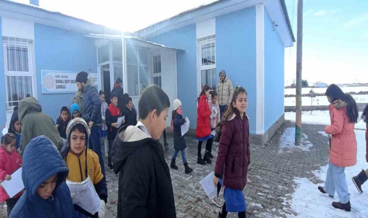 Kars’ın Akyaka ilçesine bağlı Duraklı köyü Şehit Ergün Ünlü İlkokulu’nda yoğun geçen yarıyılın sonunda öğrenciler karnelerini öğretmenlerinin elinden aldı. Onur ve takdirname belgeleriyle karnelerini alan öğrenciler, soğuk havaya aldırış etmeden evlerinin yolunu tuttu.