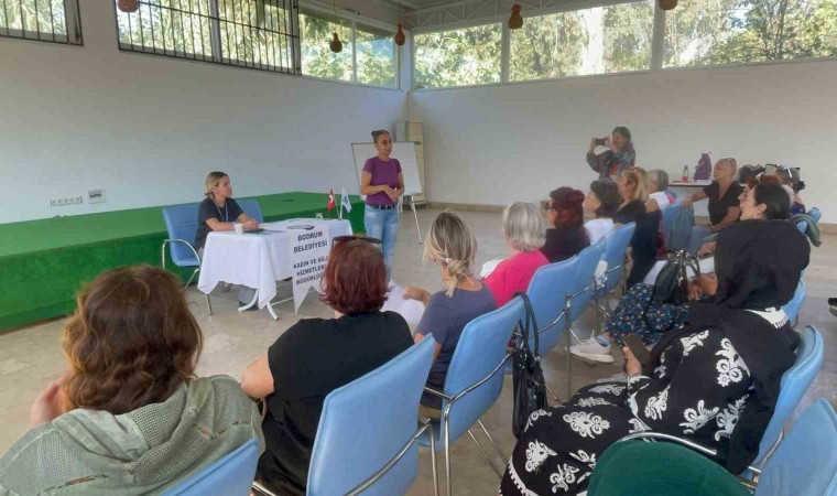 Kemer Mevkii’nde yer alan Bodrum Belediyesi Akyarlar Çok Amaçlı Salon’da düzenlenen buluşmaya Akyarlar Muhtarı İsmihan Ulutaş, Bodrum Belediyesi Kadın ve Aile Hizmetleri Müdür Vekili Av. Gözde Çakıroğlu, Bodrum Kadın Dayanışma Derneği Başkanı Figan Erozan, dernek üyeleri ve müdürlük personelleri ile mahallede yaşayan kırka yakın kadın katıldı.
