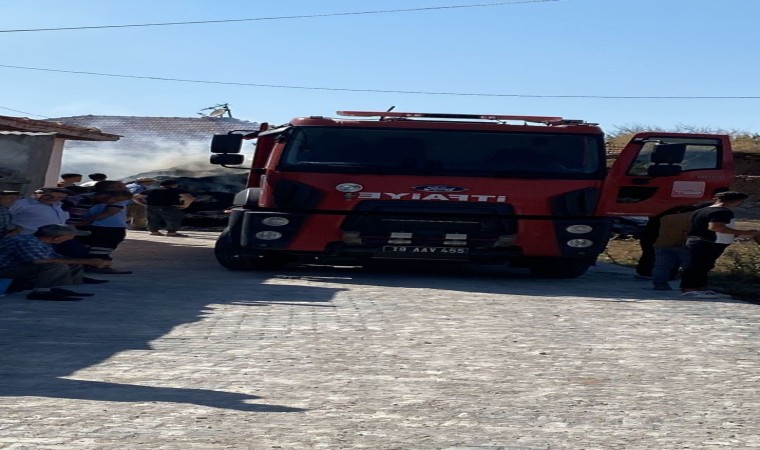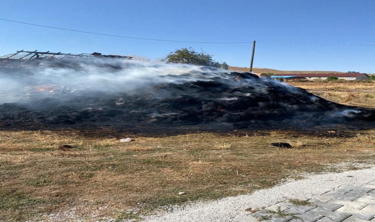 Çorum’un Alaca ilçesinde çıkan yangında, 400 saman balyası ile bir tandırın çatısı yandı.
