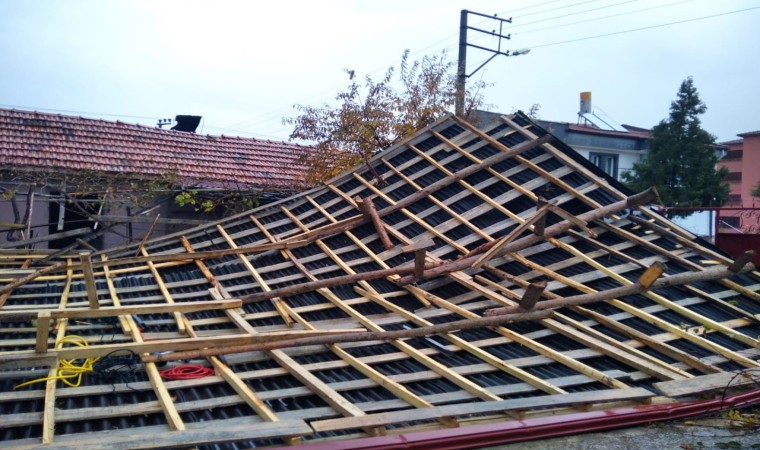 Çorum’un Alaca ilçesinde etkili olan fırtına sebebiyle evlerin çatıları uçarken, amatör maç ise ertelendi.