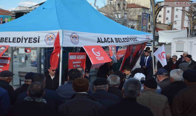 Büyük Birlik Partisi’nin (BBP) Kurucu Genel Başkanı Muhsin Yazıcıoğlu’nun ölümünün 15. yıl dönümü dolayısıyla Milli Yol Partisi Alaca İlçe Teşkilatı tarafından Mevlid-i Şerif programı düzenlendi. Alaca Ömer Paşa Camii’ndeki programda, 15 yıl önce helikopterin düşmesi sonucu yaşamını yitiren Yazıcıoğlu, yol arkadaşları ve tüm şehitler için dua edildi. Programa Milli Yol Partisi Genel Merkez Teşkilatı Başkanı Mehmet Danış, Özel Kalem Müdürü Selahettin Serçe, Çorum İl Başkanı ve MKYK üyesi, aynı zamanda Aksaçlılar Çorum İl Başkanı Feyzullah Vatansever, Alaca İlçe Başkanlığı üyeleri, partililer, Alaca Belediye Başkanı Halil İbrahim Şaltu, MHP Belediye Başkan adayı Şerif Arslan, Yeniden Refah Partisi Belediye Başkan adayı Mehdi Bolat ve vatandaşlar katıldı. Mevlid-i Şerif programının ardından katılımcılara lokma tatlısı ikram edildi.