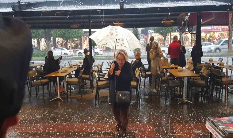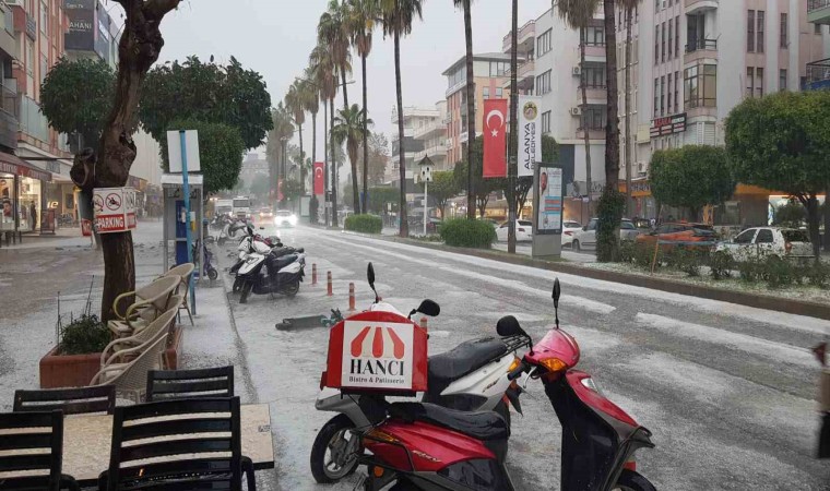 Alanya ilçesinde öğle saatlerinde başlayan sağanak yağmur hayatı olumsuz etkiledi. Yağmur kısa bir süre sonra yerini dolu yağışına bırakırken, yollar beyaza büründü. Vatandaşlar ise dolundan kurtulmak için iş yerlerine sığındı. Yoğun yağış sonucu adeta dolu seli yaşandı. Fındık büyüklüğündeki dolu yağışı kısa sürede etkisini yitirdi. 22 yıldır Antalya’da yaşadığını belirten bir vatandaş ise, ilk defa böyle bir dolu yağışını gördüğünü söyledi.