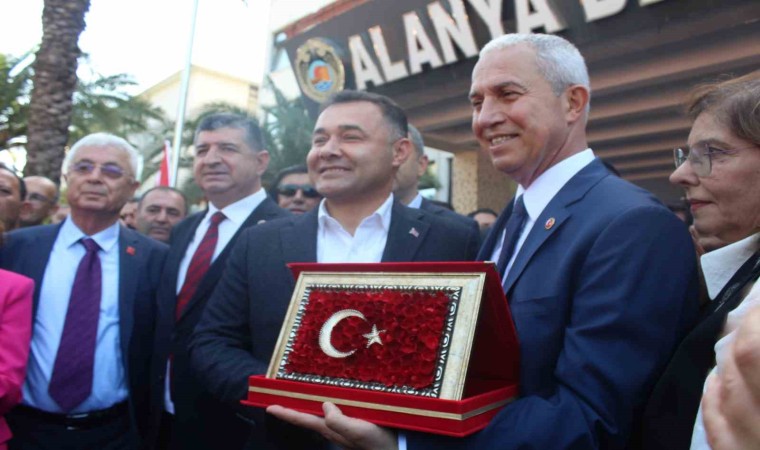 Önceki dönem Alanya Belediye Başkanı Adem Murat Yücel, Başkan Osman Tarık Özçelik’i Belediye Binası giriş kapısının önünde karşılayarak çiçek ve hediye takdim etti.