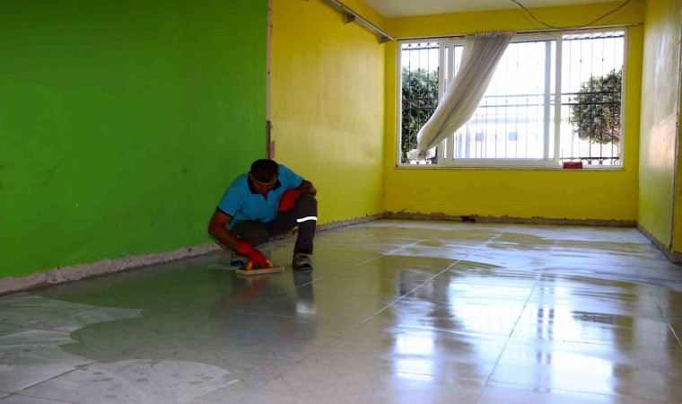Tosmur Mahallesi’nde bulunan Fatma Özmüftüoğlu İlkokulu’nda Alanya Belediyesi Fen İşleri Müdürlüğü ekipleri seramik kaplama çalışması gerçekleştiriyor. Okulun girişinden itibaren koridor ile 5 sınıfı kapsayan alanda eskiyen ve yıpranan zeminin yerine yeni seramik kaplama yapılıyor. Yaklaşık 400 metrekarelik seramik kaplamanın ardından yapılacak derz işlemiyle çalışmalar kısa süre içerisinde tamamlanacak ve yeni sezona hazır olacak. Öte yandan okulun arka bahçesinden yeni bir kapı açılarak, öğrencilerin güvenli bir ortamda servis araçlarına binmesi sağlanacak. Ayrıca kapı, pencere, çatı, lavabo, tuvaletlerin bakım ve onarımı yapılıyor.