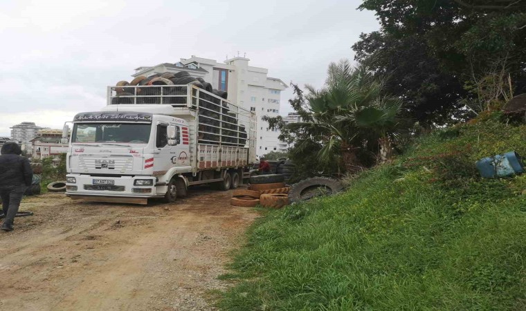 Antalya Büyükşehir Belediyesi ekipleri Alanya’da 5 yılda 25 tır atık araç lastiğini geri dönüşümle ekonomiye kazandırırken, sinek üremesinin de önüne geçti.