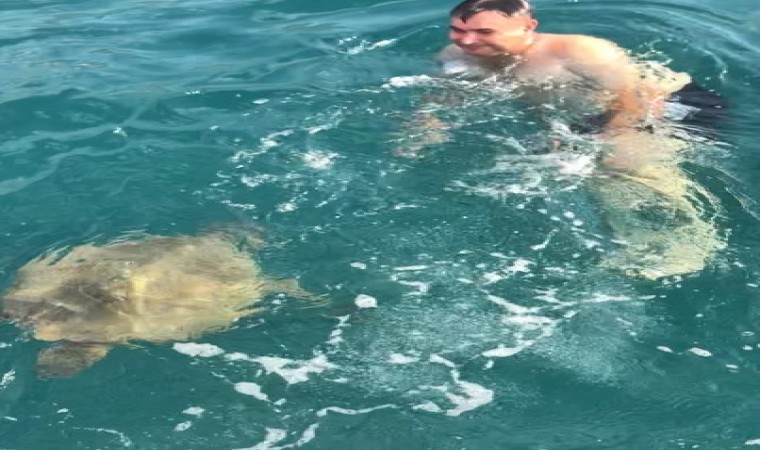 Antalya’nın Alanya ilçesinde, tarihi tersane önünde sabah saatlerinde dalış yapmak isteyen iki arkadaş, yaklaşık 80 santimetre boyunda carretta caretta ile karşılaştı. İlk başta korkan ikili, daha sonra yaklaşık 1,5 saat boyunca kaplumbağa ile birlikte yüzdü.