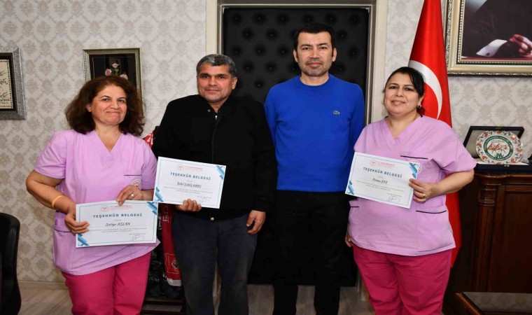 Ziyaret esnasında verdikleri hizmetlerden dolayı sağlık emekçilerine teşekkür eden Doç. Dr. Güler, “Meslek hayatınız boyunca hastalarımıza büyük bir özveriyle hizmet etmiş ve emekliye ayrılmış olan değerli çalışanlarımıza birlikte çalıştığımız süre içerisindeki özverili ve başarılı çalışmaları için teşekkür eder, emeklilik yaşamınızda sağlık ve mutluluk dilerim" dedi. Başhekim Doç. Dr. Yılmaz Güler, kendilerine bugüne kadar vermiş oldukları hizmetlerden dolayı çalışanlara teşekkür belgesi takdim etti.