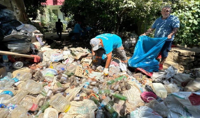 Alanya Belediyesi Temizlik İşleri Müdürlüğü ekipleri, vatandaşlardan gelen talep üzerine Kestel Mahallesi’nde bulunan çöp evde temizlik yaptı. Dezenfekte edilen evden, 4 kamyon dolusu atık çıktı.