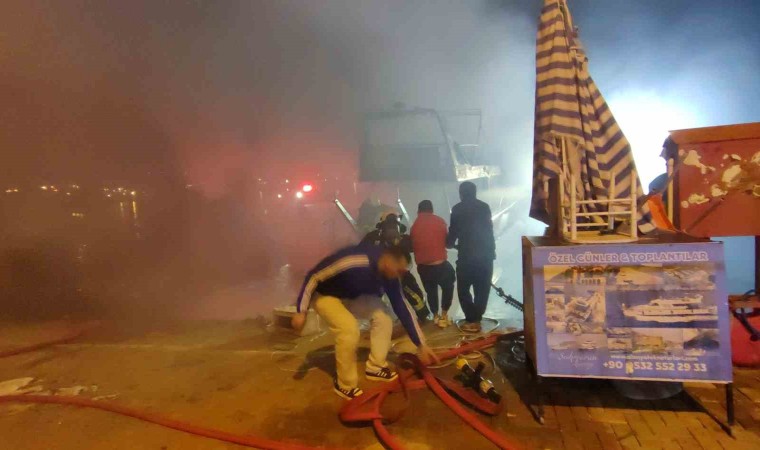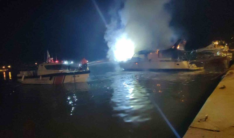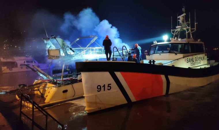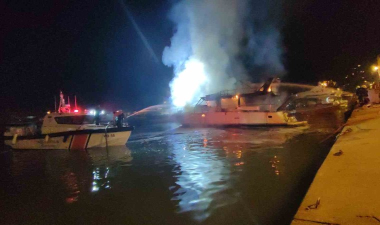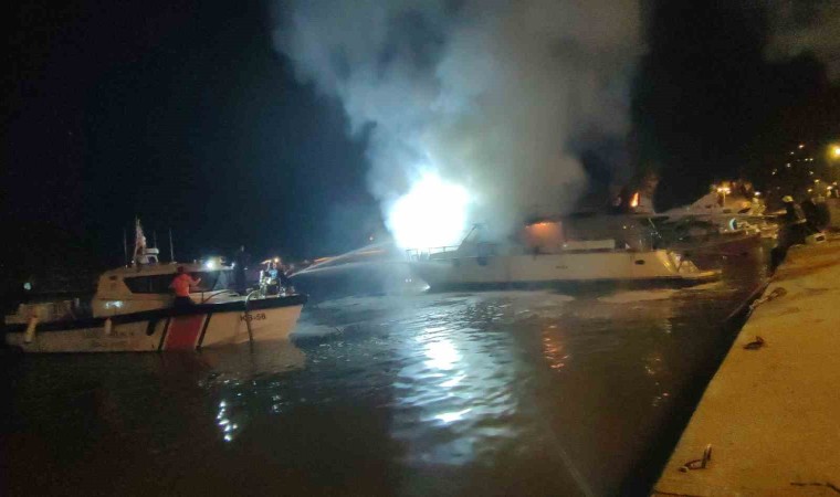 Antalya’nın Alanya ilçesinde balıkçı barınağında bulunan lüks yat alev alev yandı. İtfaiye ekiplerinin yoğun çalışması sonrası söndürülen yangın sonucunda yat kullanılmaz hale geldi.
