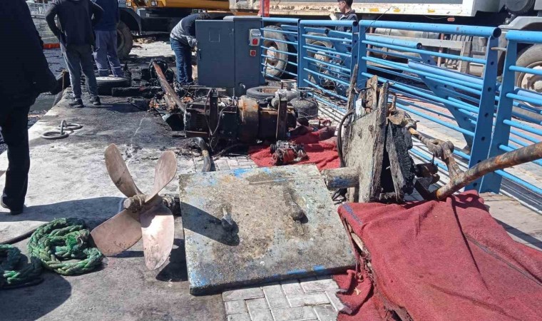 Alanya Balıkçı Barınağı’nda 21 Mart’ta sabah saatlerinde bir teknede çıkan yangın yanındaki diğer tekneye sıçramış ve iki tekne yanmıştı. Yanan teknelerden biri parçalanarak su altına batarken, teknedeki eşyalar ve bazı parçaları kıyıya çıkartıldı. Belediyeye ait bir iş makinesi vasıtasıyla batan teknede tüp, pervane, çeşitli motor ve demir parçaları ile kişisel eşyalar yüzeye çıkartıldı.